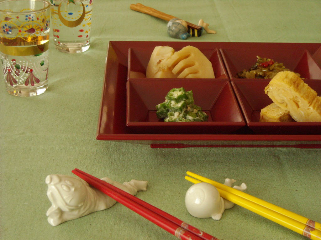 カラーバージョンと白地のはし置きがあります。