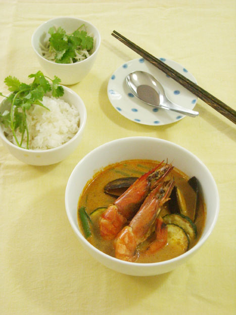 ぴりりと刺激的な辛さとココナッツの甘さがマッチしておいしいカレーになりました♪