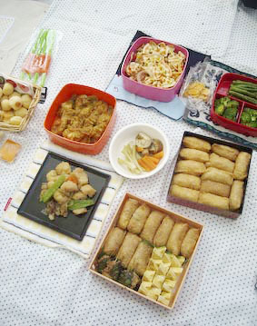 15人くらいが集合したので、和と洋のミックスで料理を持っていきました。