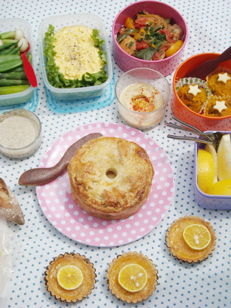私は「桜模様のポテトパイ」と「フムス」と「レモンタルト」を持っていきました☆