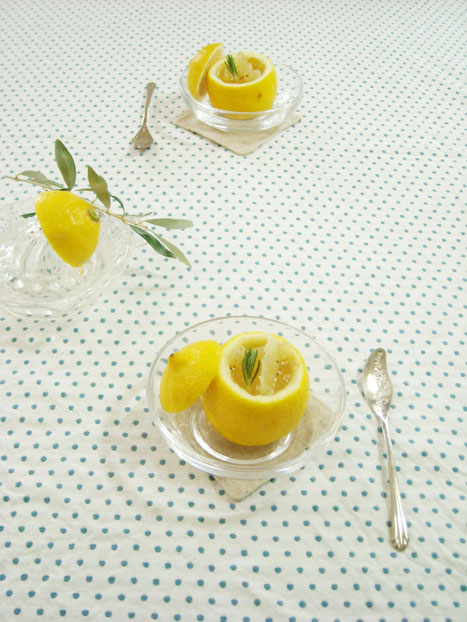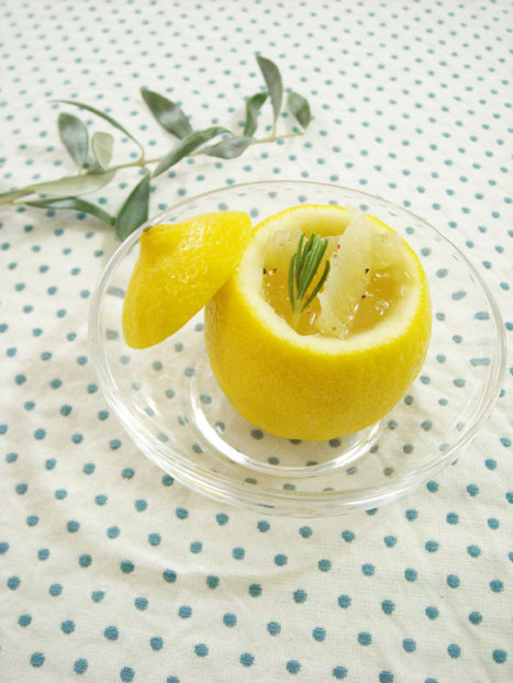 ●レモンは器にするのでヘタの部分を立つように少し切る。