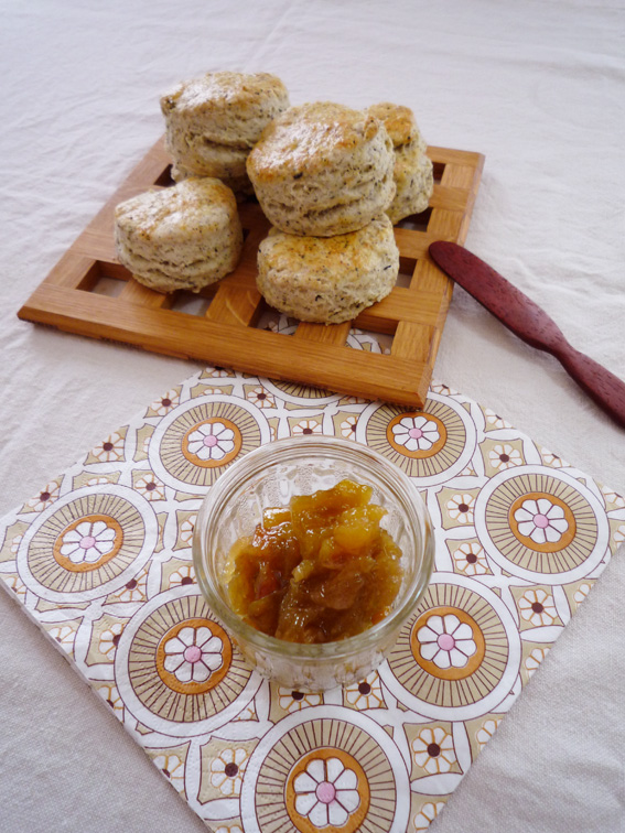 ルバーブのジャムをスコーンに乗せていただきました。